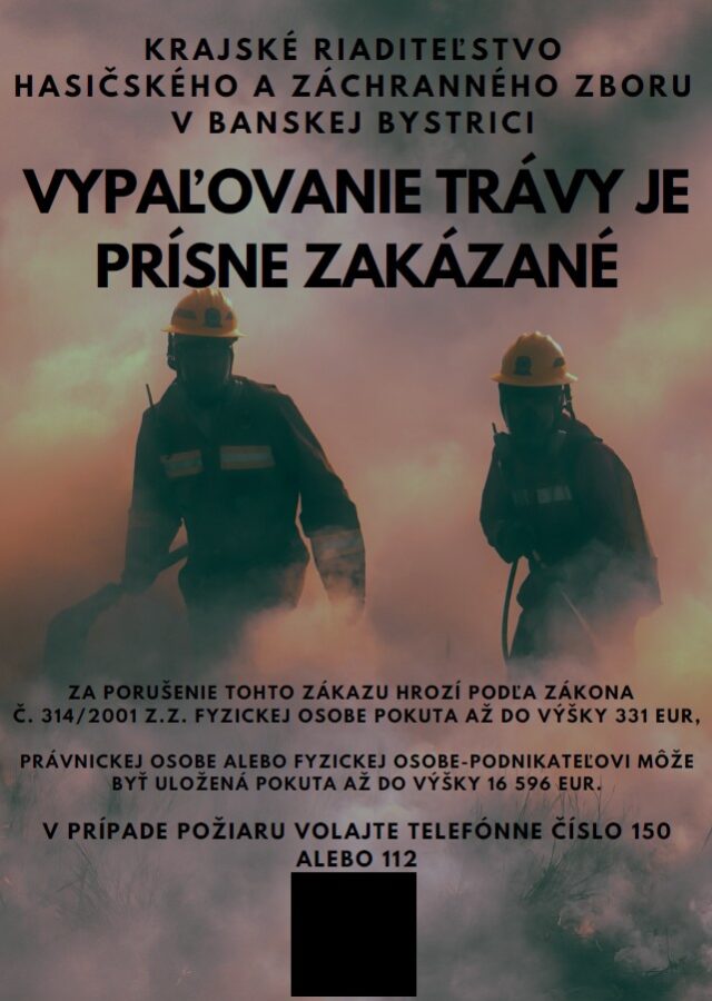 Okresné riaditeľstvo Hasičského a záchranného zboru v Banskej Bystrici Vám vzhľadom na zvýšený počet výjazdov súvisiacich s likvidáciou požiarov trávnatých porastov dáva do pozornosti nasledovné :